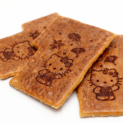 ハローキティの絵柄がデザインされた小瓦せんべい9枚入りです。季節によりバージョンが変更となります。