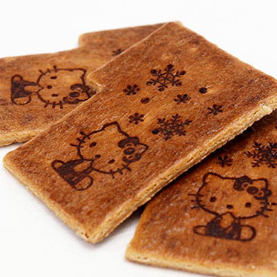 ハローキティの絵柄がデザインされた瓦せんべい(中)5枚 箱入です。